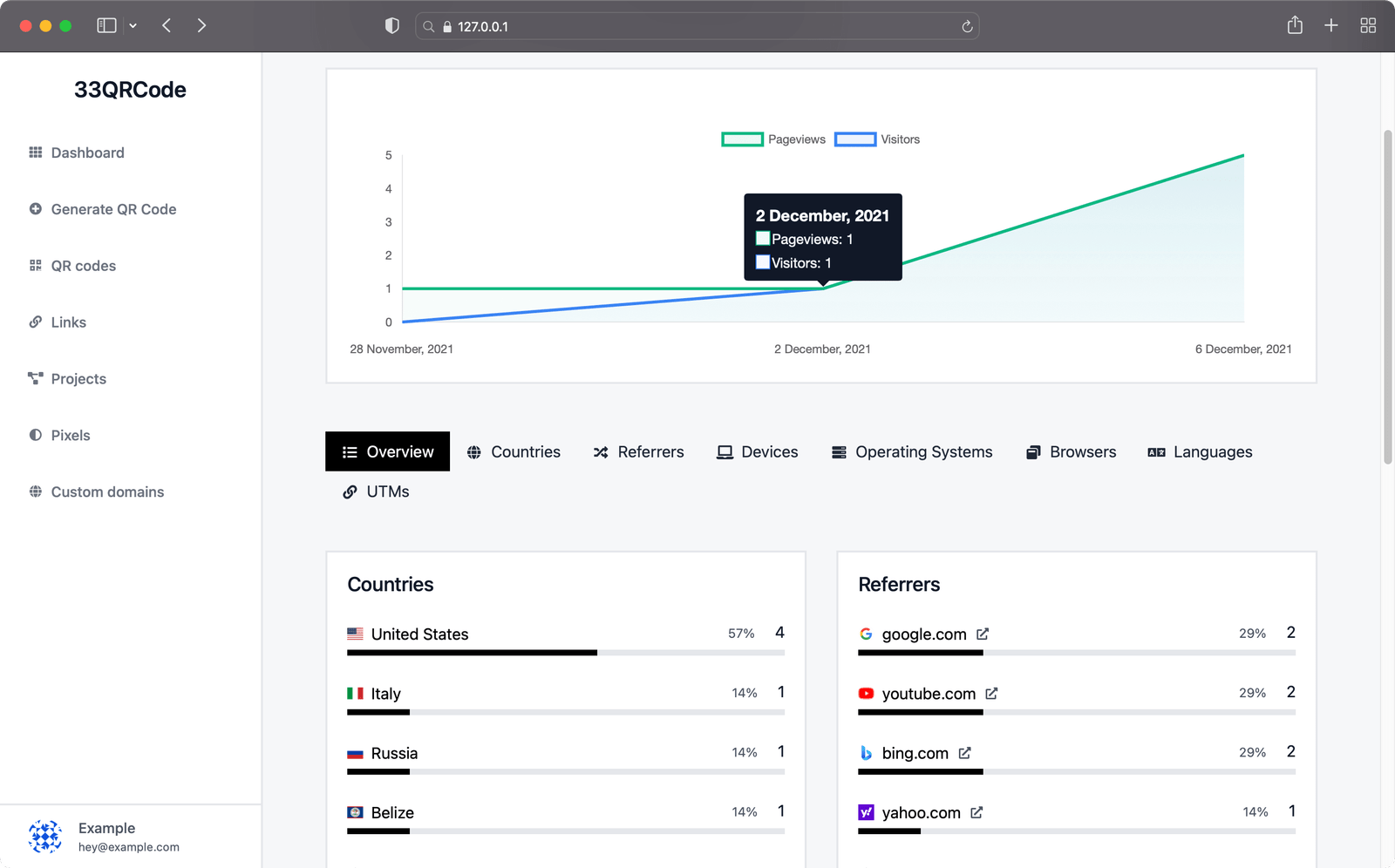 We do not store any data of your created QR codes, except the ones that you save in your account willingly.